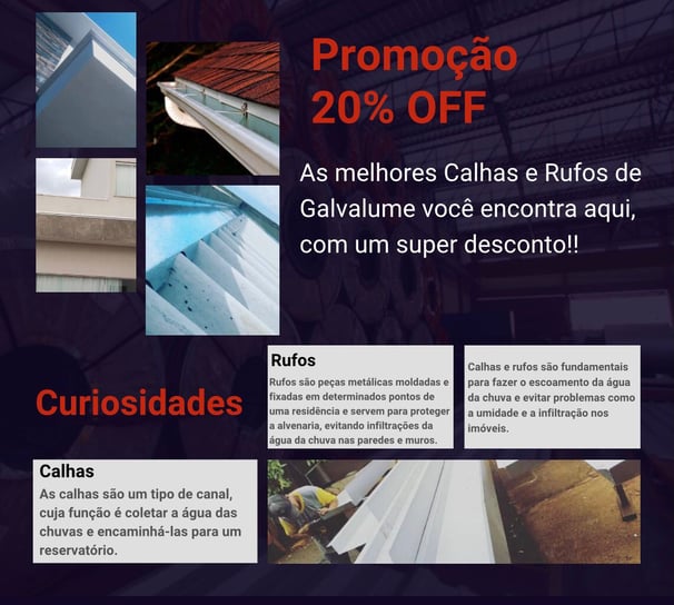Somos especializados em calhas molduradas de alta qualidade. Com mais de 10 anos de experiência, oferecemos garantia de 1 ano, mão de obra qualificada e atendimento personalizado.